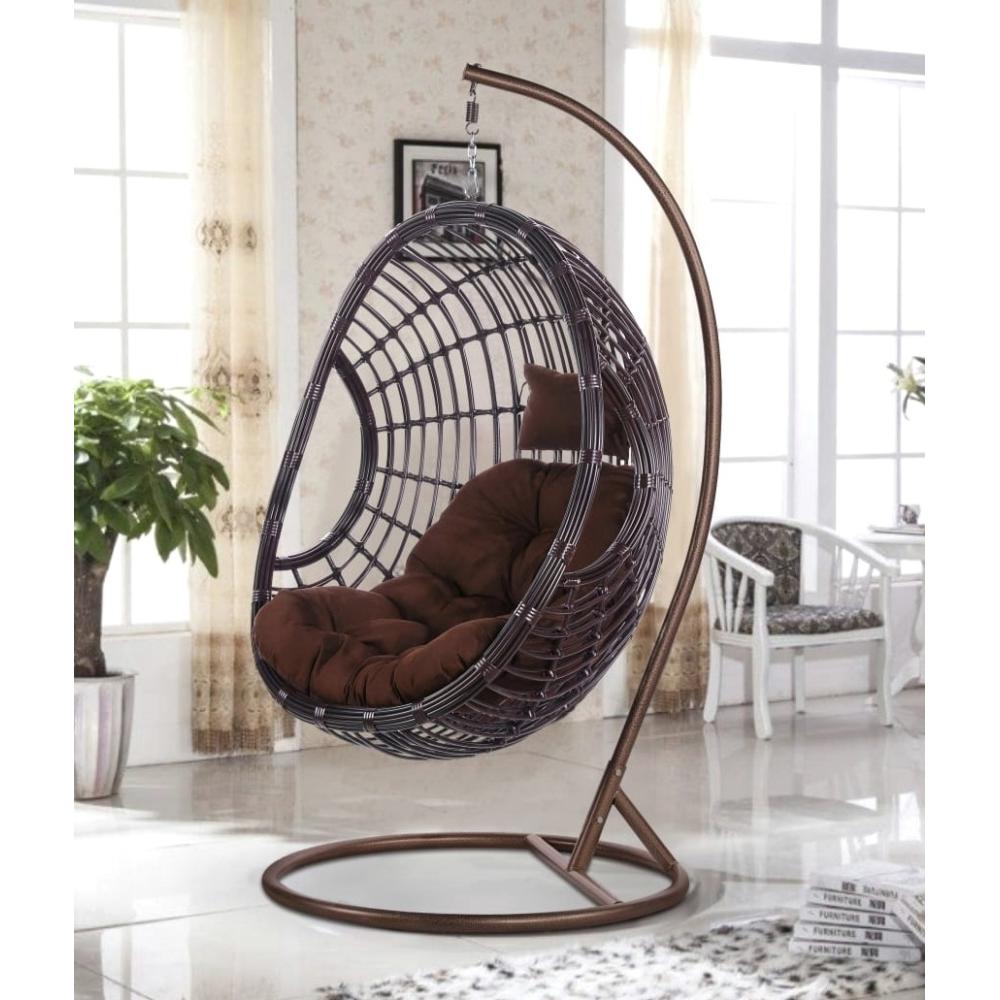 Размер корзины: 124х98х72 см Стойка: H2,0xD1,0 м, Каркас сталь. Материал плетения на корзине: искусственный ротанг коричневого цвета. Подушка коричневая. Ткань с водоотталкивающей пропиткой. Допустимая нагрузка: 120 кг.