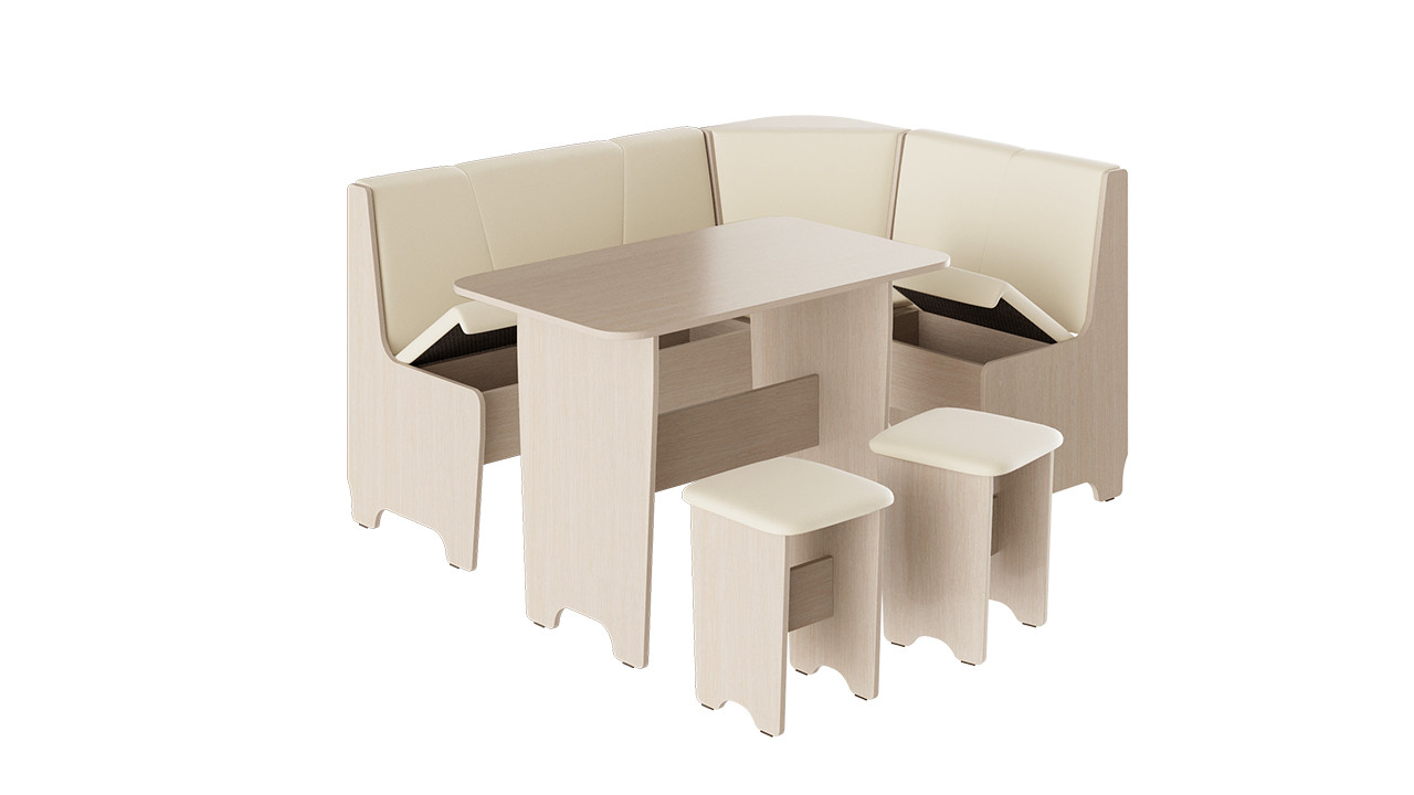 • Обеденная зона "Техас" состоит из удобной угловой скамьи, практичного стола и компактных табуретов.