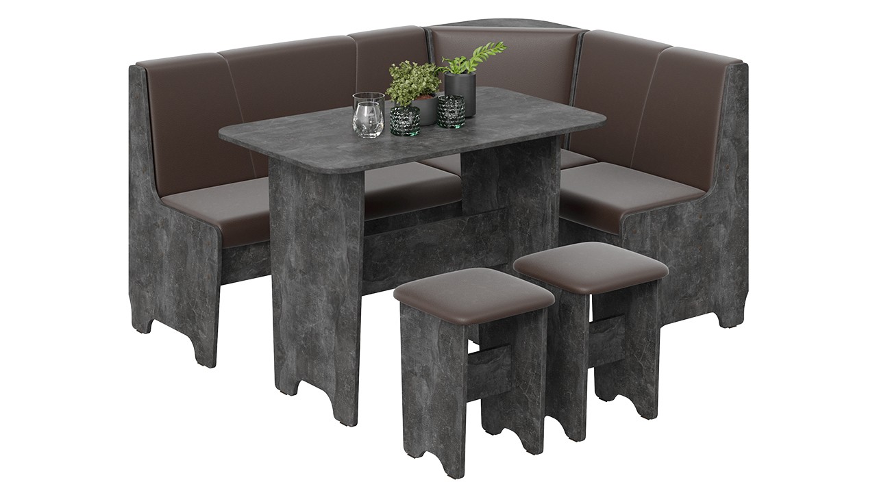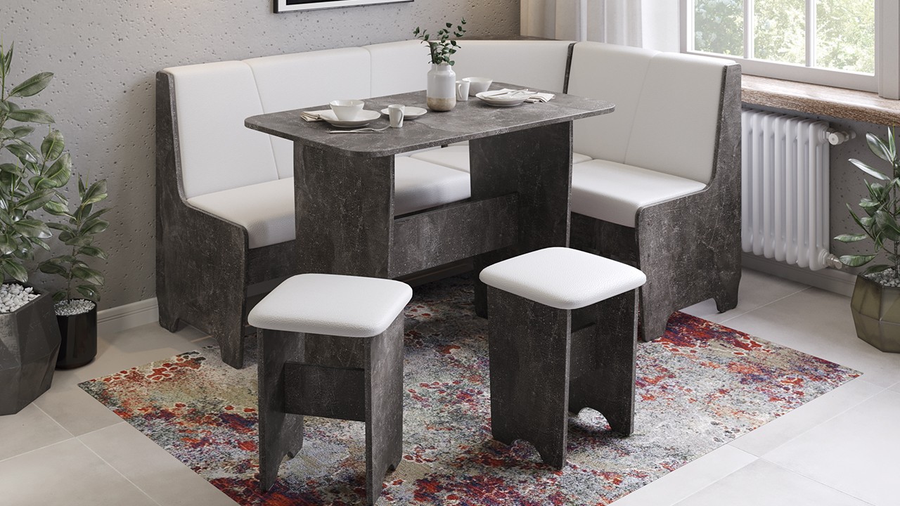 • Обеденная зона "Техас" состоит из удобной угловой скамьи, практичного стола и компактных табуретов.