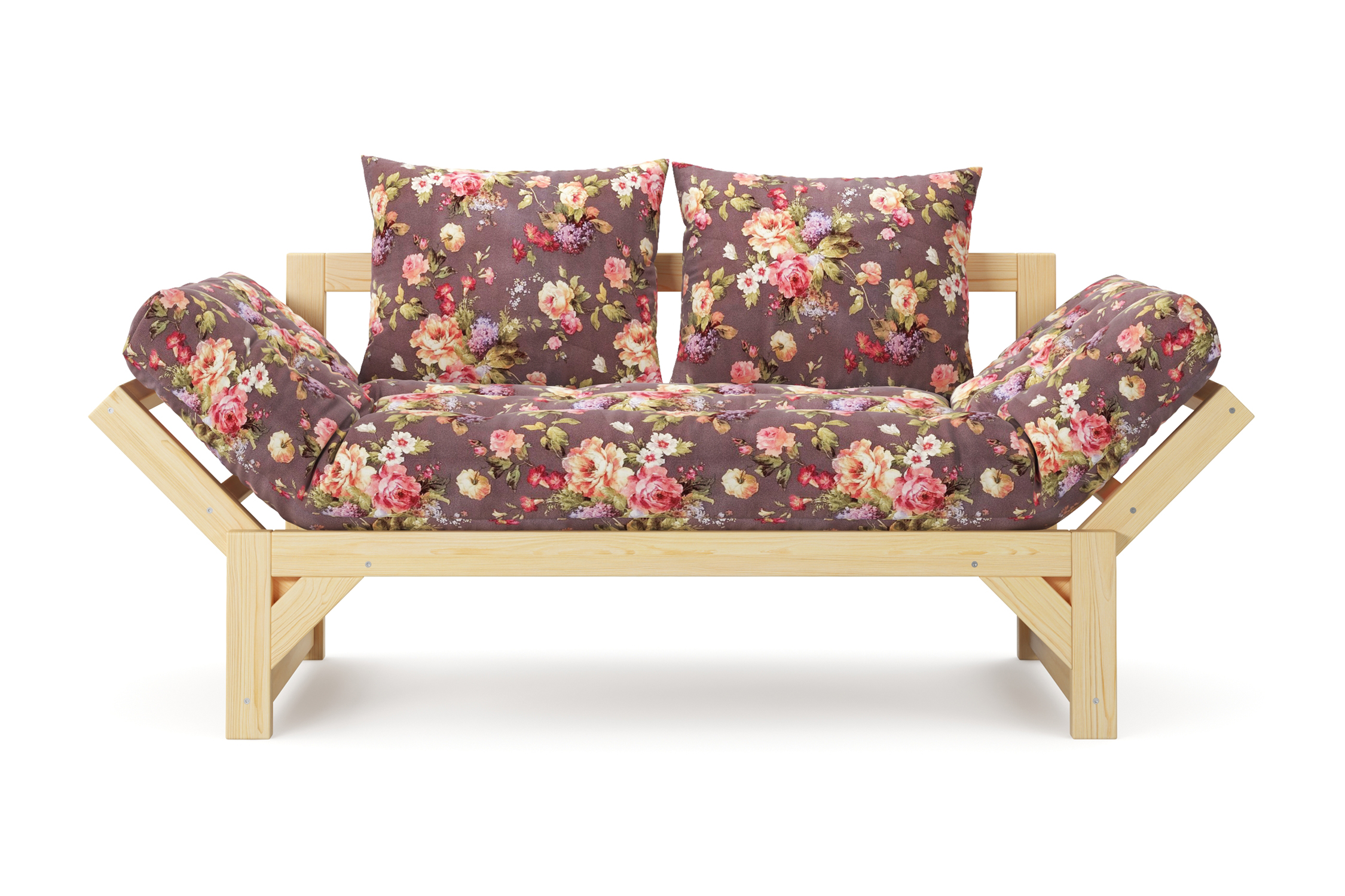 Максимальная нагрузка — 220 кг. Ширина деревянной спинки 130 см. Приспинные подушки, представленные на фото, входят в комплект. Декоративные приобретаются отдельно. Диван продается без лакокрасочного покрытия, под самостоятельную покраску. Высота сиденья без матраса - 31 см, с матрасом 46 см.