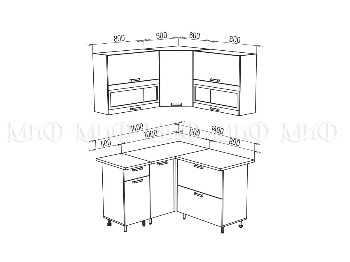 —Кухонный Гарнитур Угловой Техас NEW 1400 Х 1400 мм/Разные Цвета