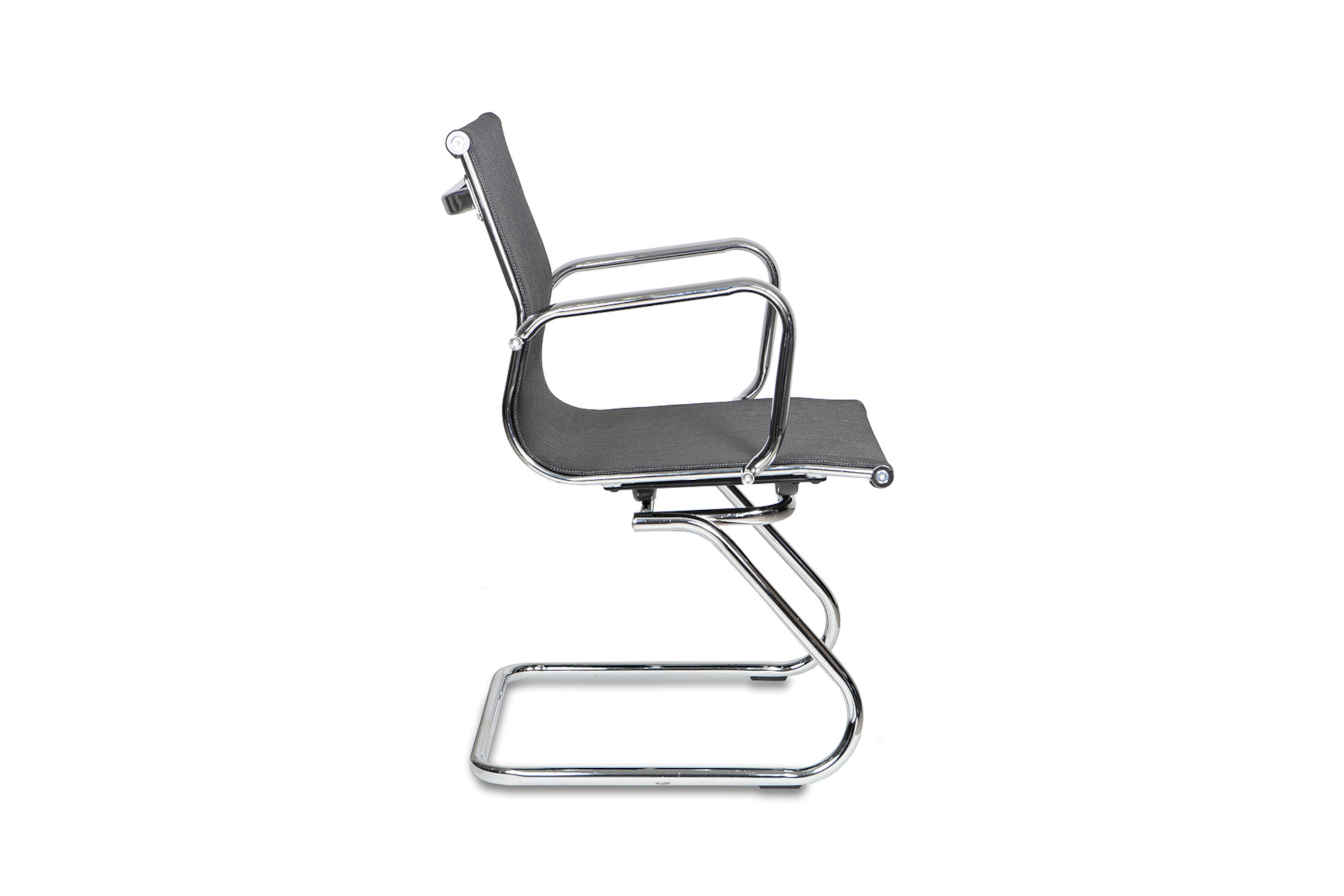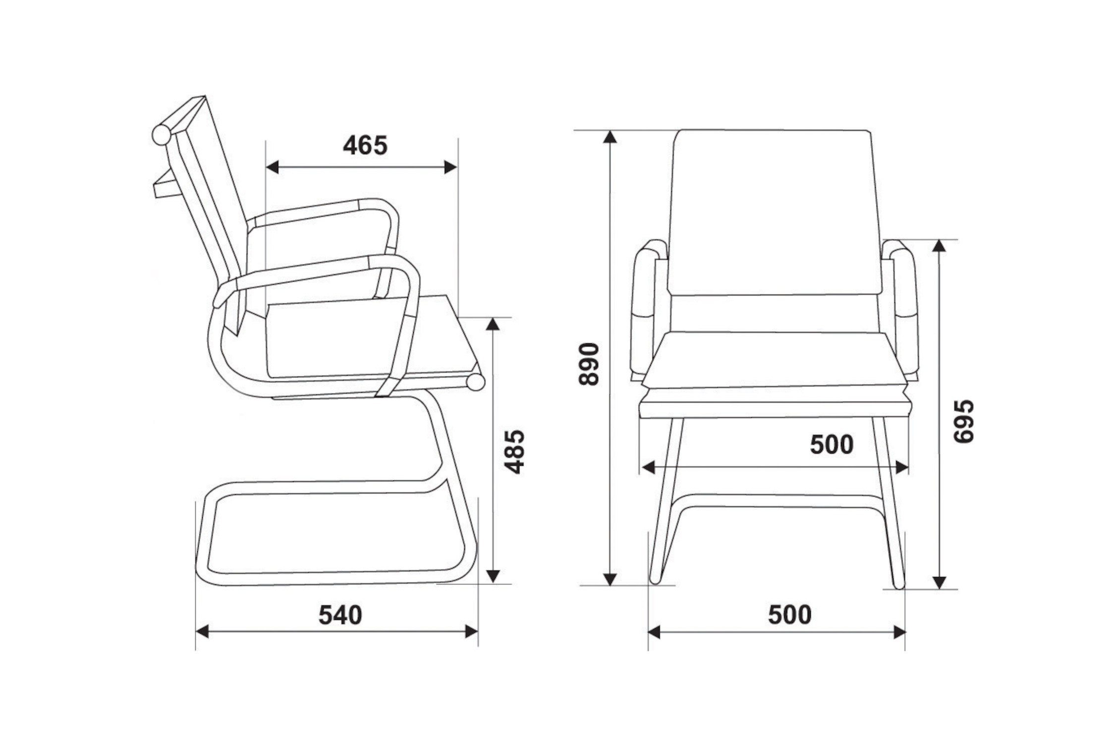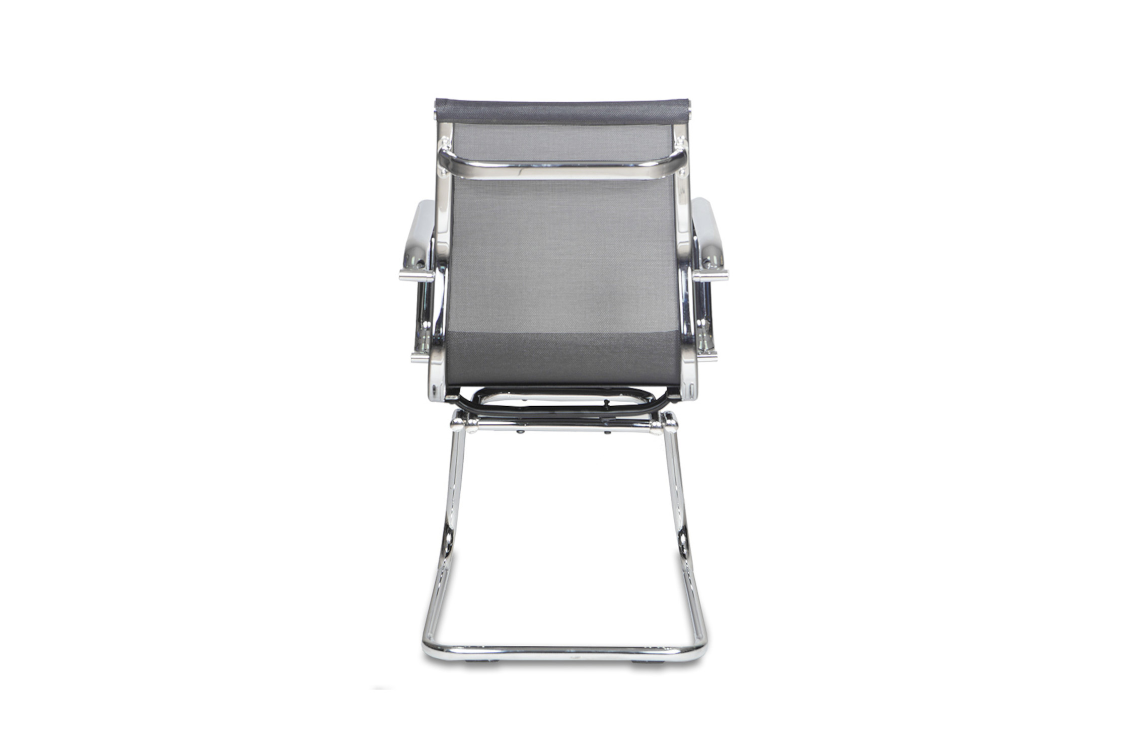 Высота сиденья - 48.5 см. Высота с подлокотниками - 69.5 см. Ширина сиденья - 50 см. Глубина сиденья - 46.5 см. Ширина полозьев - 50 см. Материал обивки: сетка (ПВХ + полиэстер). Спинка цельная с сиденьем. Подлокотники металлические хромированные без накладок.